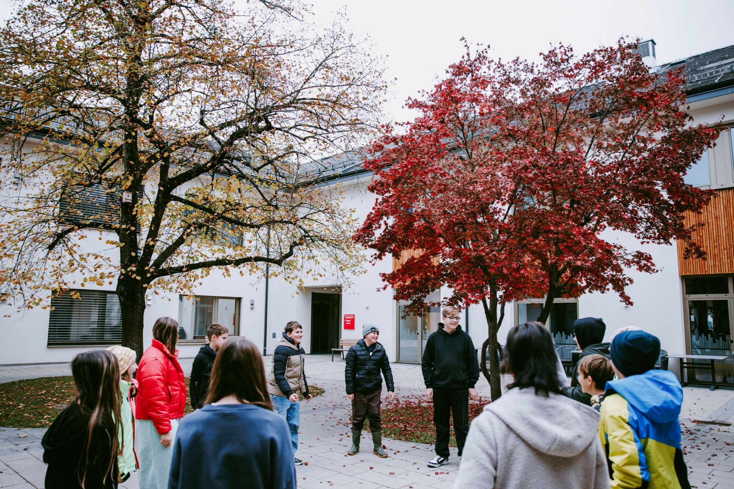 Ein fixer Bestandteil des Schulalltags ist außerdem der große Außenbereich. „Wir haben einen tollen, großen Schulgarten, in dem wir gemeinsam arbeiten.“ Natur und Praxis ergänzen den Unterricht. Verantwortung übernehmen die Jugendlichen nicht nur für Projekte, sondern auch für ihren gemeinsamen Lebensraum. Was Joel noch gefällt? „Wir haben selten Hausübungen“, berichtet Joel. Lernzeiten finden in der Schule statt, begleitet und strukturiert. Für viele Familien bedeutet das Entlastung im Alltag.